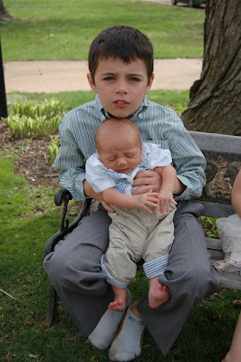 McKenz's dress is so pretty! She is such a little doll, that one. And Grayson is definitely a beautiful little guy. And he is still a newborn for sure!